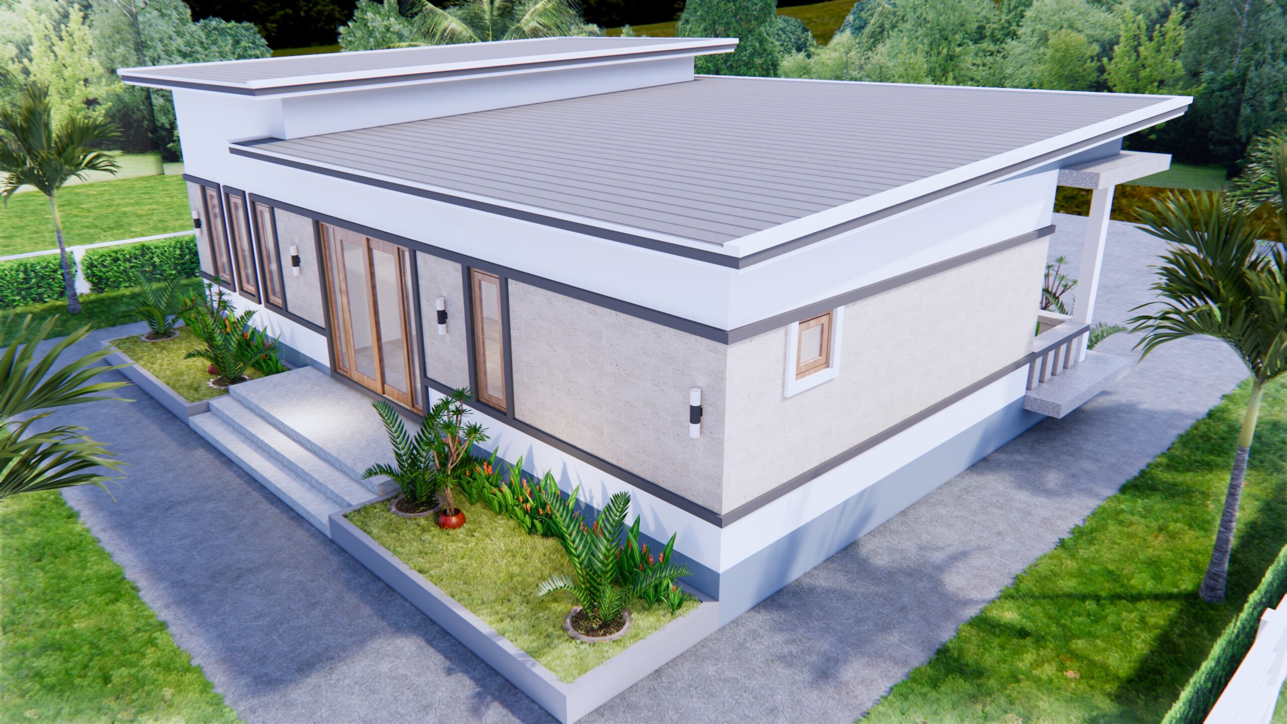 1 Story Modern House 12×12 Meters 40×40 Feet 3 Beds