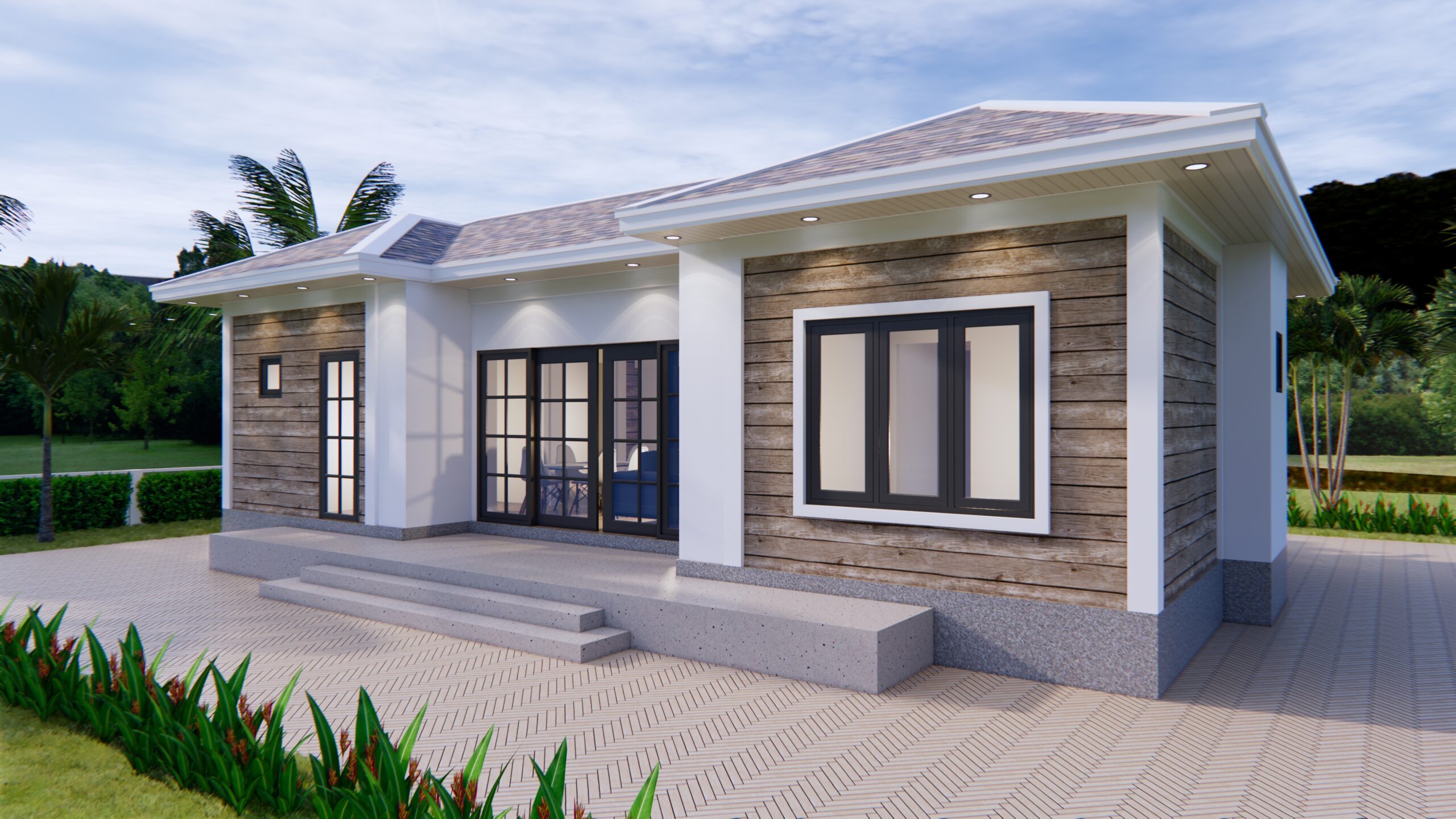 This is a small house design with 13 meter wide and 7.5 meters long. It has 3 bedrooms with full completed function in the house. You will love with this 3d House Drawing 13×7.5 Meter 43×25 Feet 3 Beds.