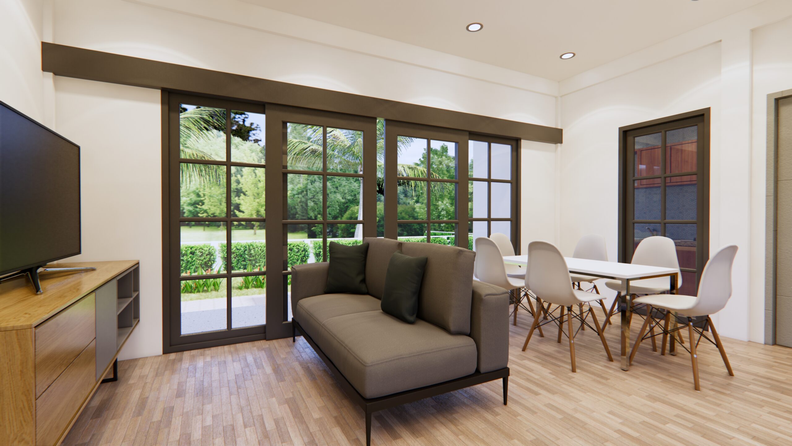 Finally, The Hip roof type is made from Cement tiles (or your local roof tiles) that cover above Gypsum board ceiling . It make the house look clean and modern.