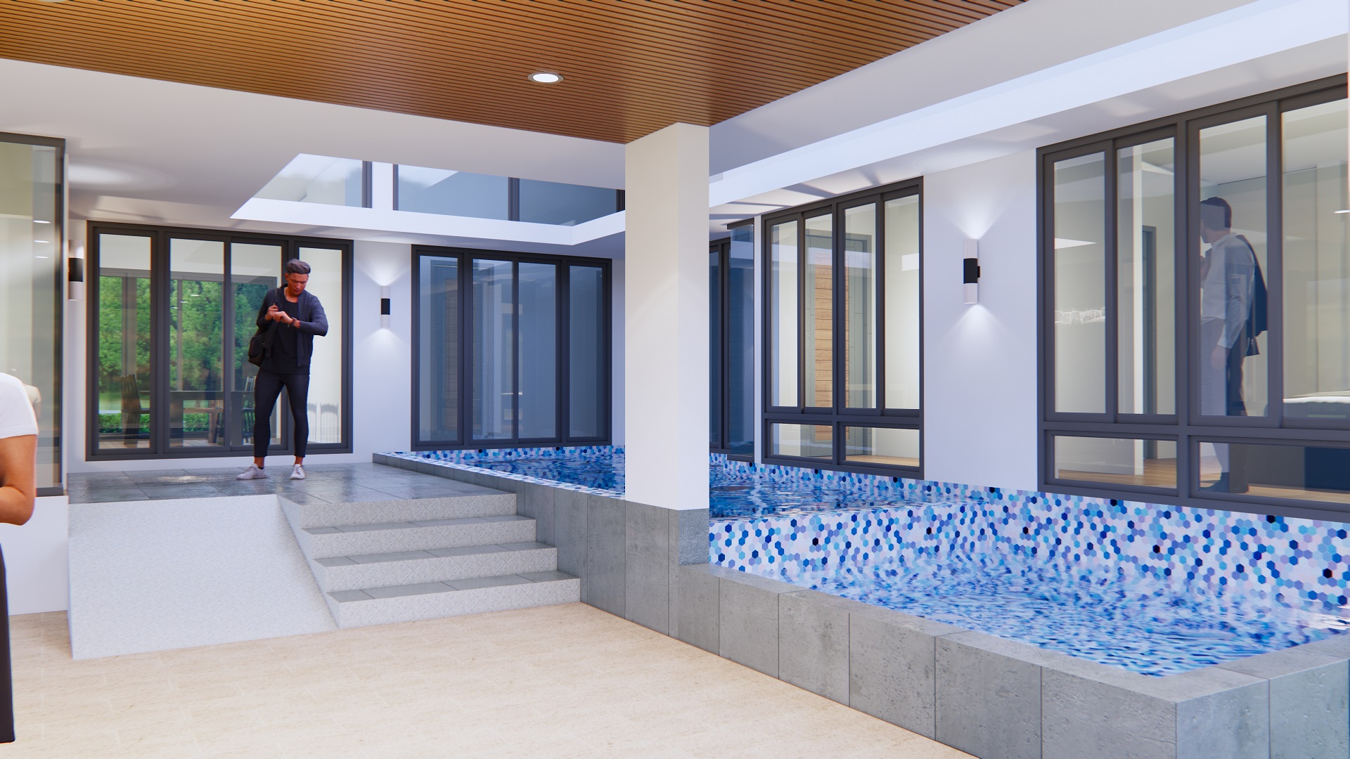 Floor plan Detail House Design with Pool 14×14:
