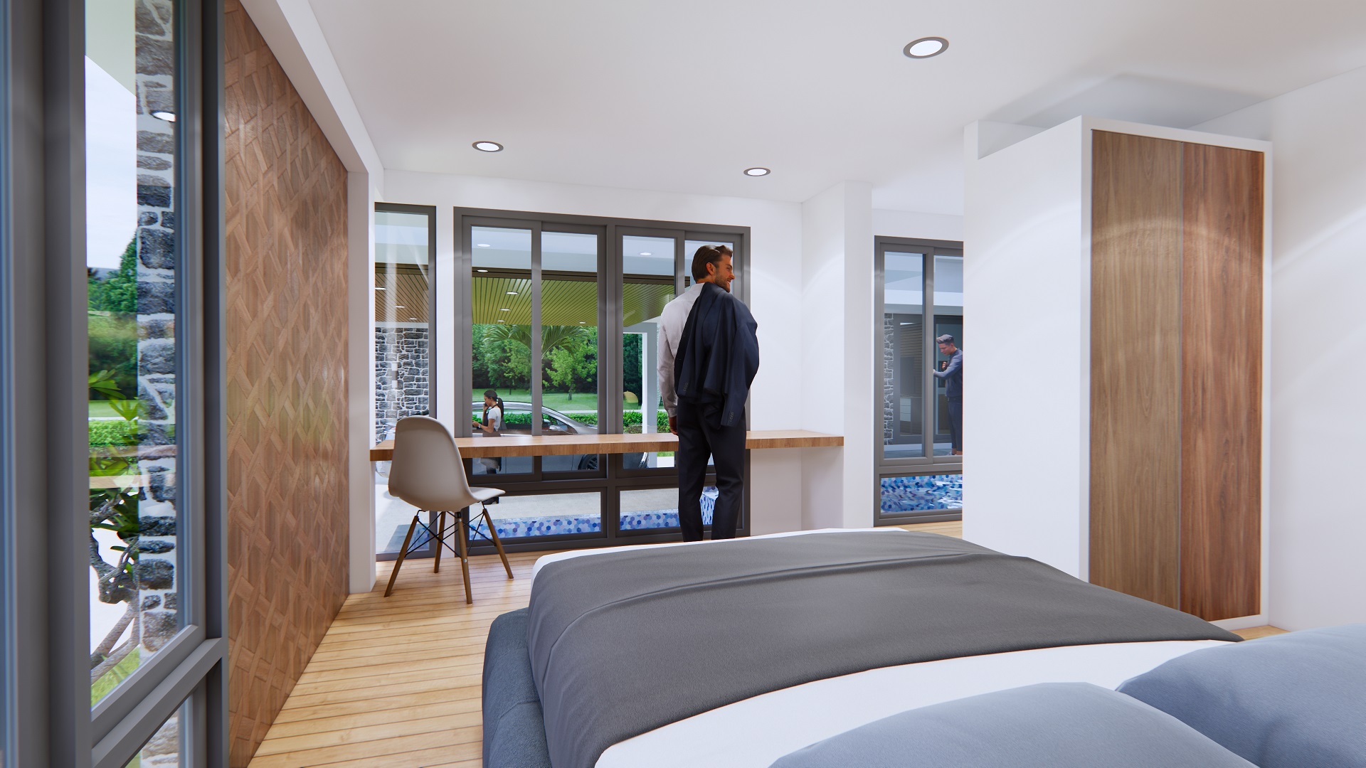 House Design with Pool 14×14 Meter 46×46 Feet, This is a small house design with 14 meter wide and 14 meters long. It has 3 bedrooms with full completed function in the house. You will love with this Design let’s check the detailing plans Below.